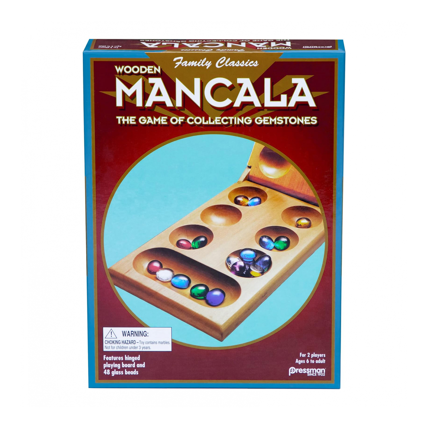 Pressman Mancala – Real Wood Folding Set, with Multicolor Stones by Pressman